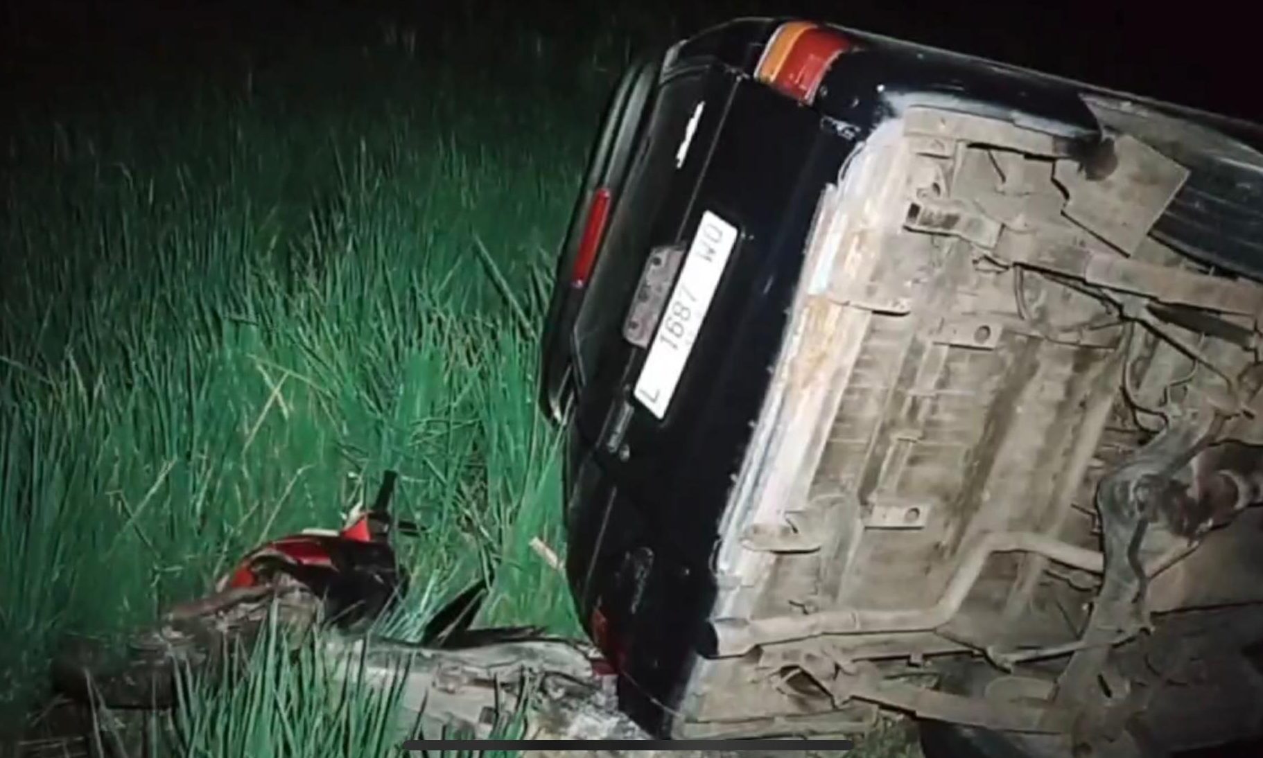 Nganjuk, HarianForum.com– Sebuah minibus jenis Isuzu Panther berwarna biru dengan nomor polisi L 1687 WD mengalami kecelakaan tunggal di wilayah Desa Sumengko, Kecamatan Sukomoro, Kabupaten Nganjuk, Jawa Timur. Kendaraan yang dikemudikan oleh Valen, warga Desa Kepanjen, Kecamatan Pace, Kabupaten Nganjuk ini, terguling ke area persawahan usai menabrak sepeda motor Honda Beat merah bernopol AG 6848 XD yang sedang terparkir di pinggir jalan.