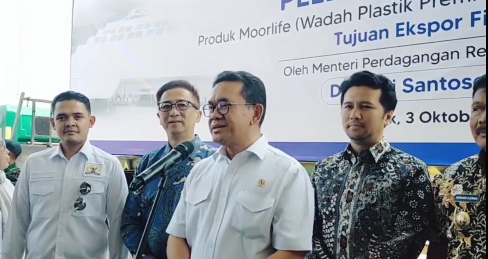 Nganjuk, HarianForum.com – Menteri Perdagangan RI, Budi Santoso, melepas secara resmi ekspor empat kontainer produk peralatan berbahan plastik merek Moorlife ke Rumania dan Filipina, dalam kunjungannya ke Kabupaten Nganjuk, Jawa Timur, Jumat (3/10/2025).