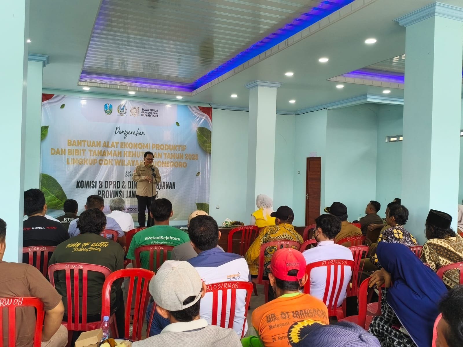 Tuban, HarianForum.com- PT Semen Indonesia (Persero) Tbk (SIG) Pabrik Tuban menyerahkan bantuan sumur bor untuk Kelompok Tani Hutan (KTH) Wono Lestari, Desa Tegalrejo, Kecamatan Merakurak, Kabupaten Tuban, Selasa (14/10/2025). Penyaluran bantuan tersebut dilaksanakan pada kegiatan penyerahan bantuan alat ekonomi produktif dan bibit tanaman oleh Dinas Kehutanan Provinsi Jawa Timur dan DPRD Provinsi Jawa Timur.